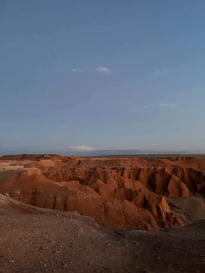 붉은 기암절벽이 있는 ‘차강 소브라가’(Tsagaan Suvraga)에서는 고생대 시기 바다의 흔적이 남아있다